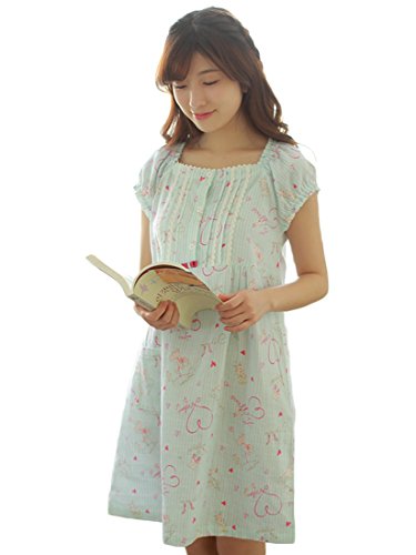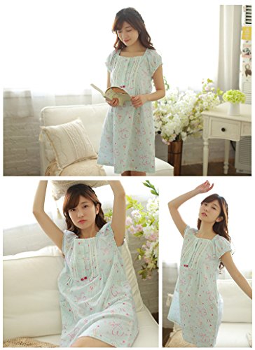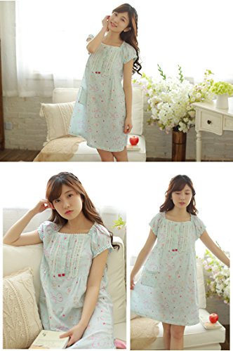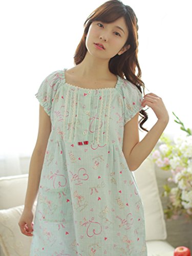 (レモンツリーセブン)Lemon tree7 レディース 綿100% 半袖 ワンピース お洒落 夏 ハート柄 可愛い レース プリーツ フリル ルームワンピース ネグリジェ ブルー L
