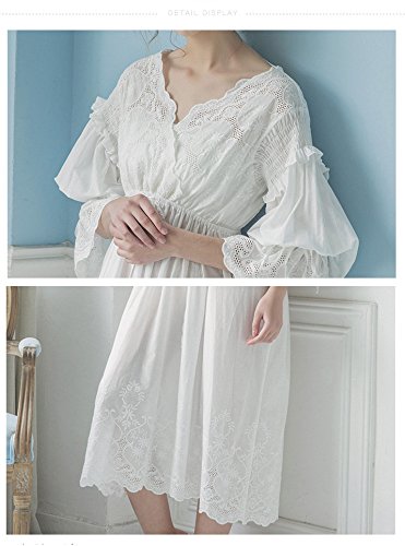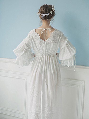 (レモンツリーセブン)Lemon tree7 綿100% レディース ルームウェア 夏 可愛い レース 半袖 ルームウエア フレア フリル ナイトウェア パジャマ ネグリジェ フレア マキシ丈 ワンピース ホワイト