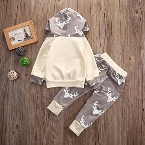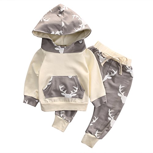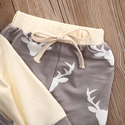 XMAS 子供服 キッズ服 男の子 女の子 シカ スウェット+レギンス 二点セット (12-18月, ベージュ)