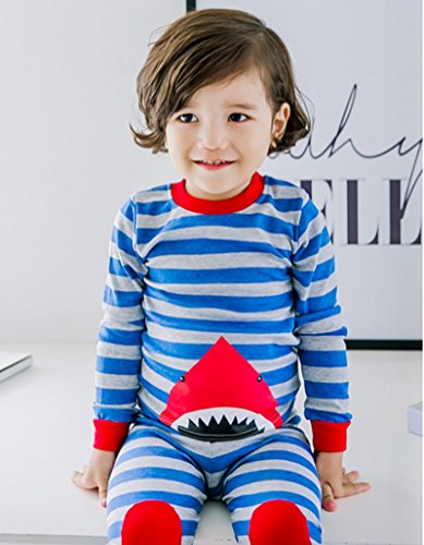 ベビー服 男の子 女の子 綿 長袖 プリントパーカーとパンツアウトフィット (7歳, ブルー)