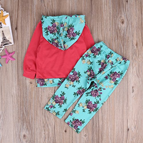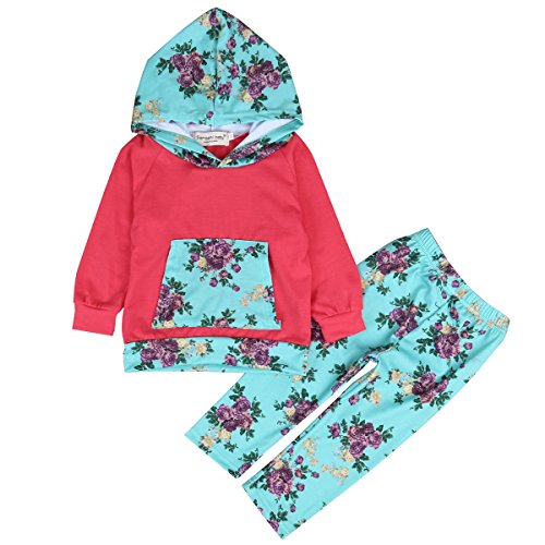ベビー服 女の子 長袖花プリントパーカーとパンツアウトフィット (70(0-6月), フローラル)