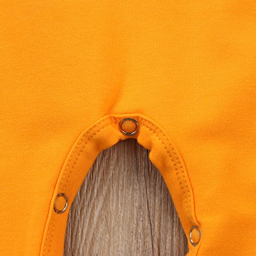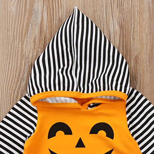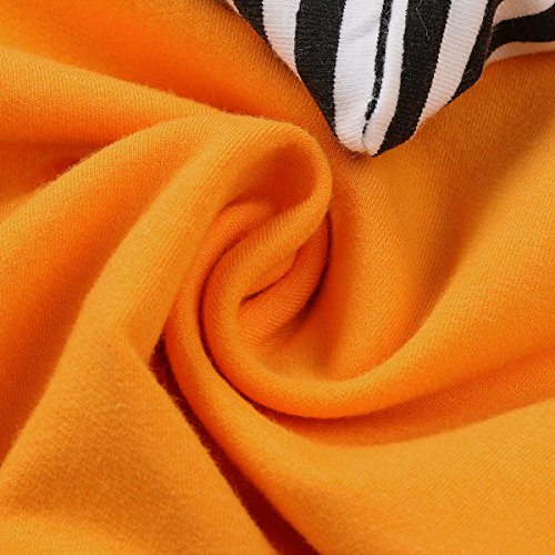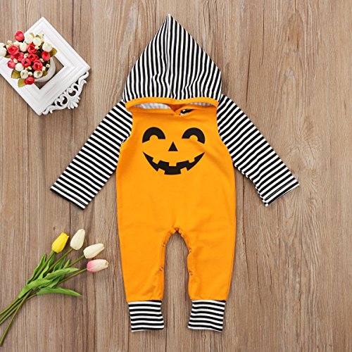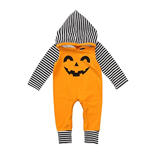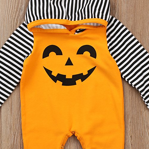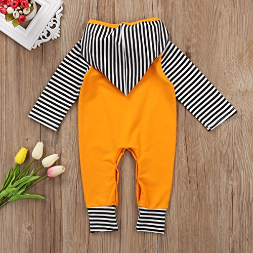 新生児 幼児 男女兼用 ロングスリーブ ロンパース フード付き 綿 ストライプ かわいい ハロウィーン カボチャ コスチューム (90, イエロー)