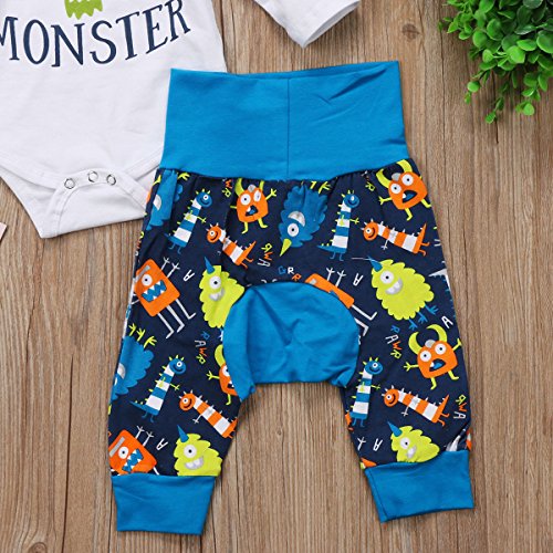 新生児 幼児 男の子 パジャマ 英字 ロングロンパース+ プリント柄 長ズボン+ 帽子 三点セット 綿 ボディスーツ (70, ブルー)