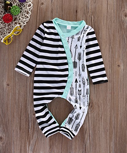 ベビーポルカドット 新生児 幼児 女の子 綿100% 矢印 ロンパース 0-2歳設定 長袖 (70cm, 緑)