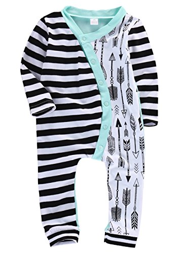 ベビーポルカドット 新生児 幼児 女の子 綿100% 矢印 ロンパース 0-2歳設定 長袖 (80cm, 緑)