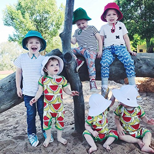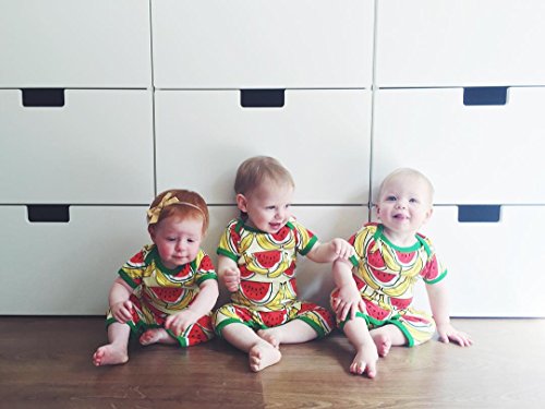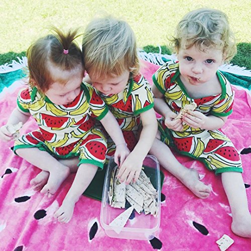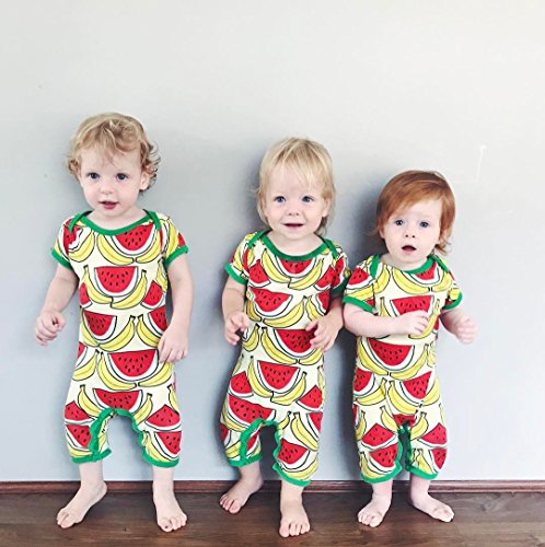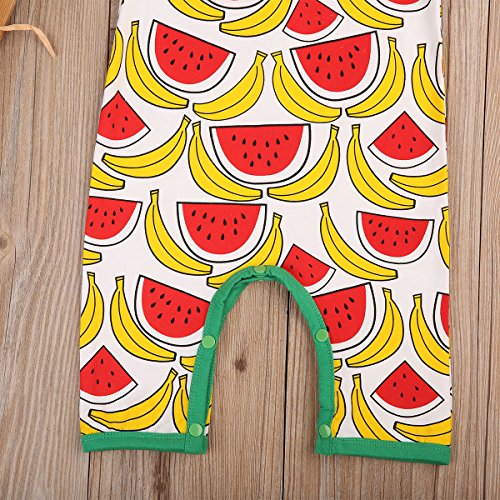 ベビー服 男の子 女の子 綿100% バナナ スイカ フルーツ プリント 半袖 ズボン ロンパース 夏秋服 タンクトップ (80, イエロー+レッド)