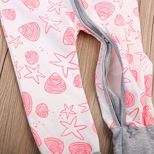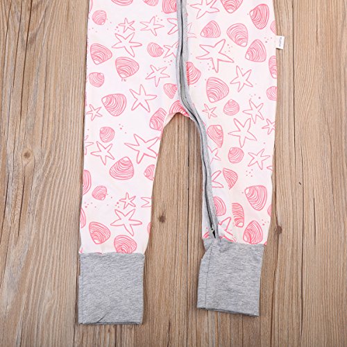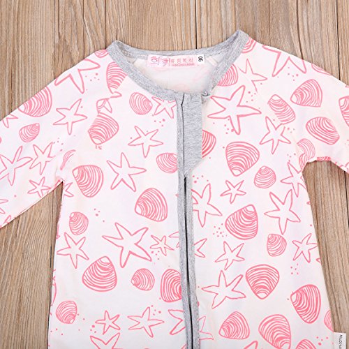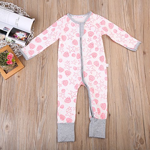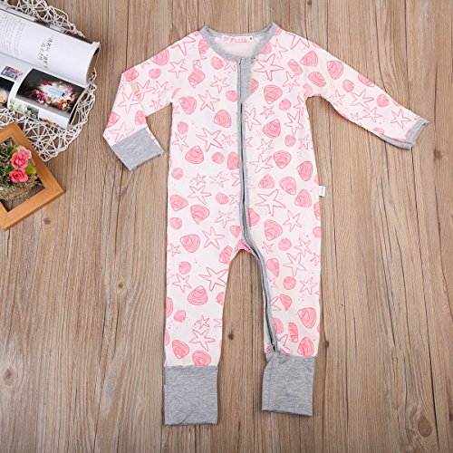 女の子 ベビー服 ロングスリーブ カバーオール 前開き ジッパー 綿100% スターパターン ロンパース 子供服 ピンク (90, ピンク)