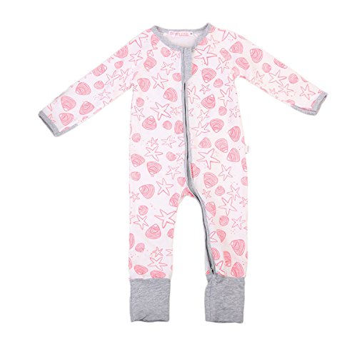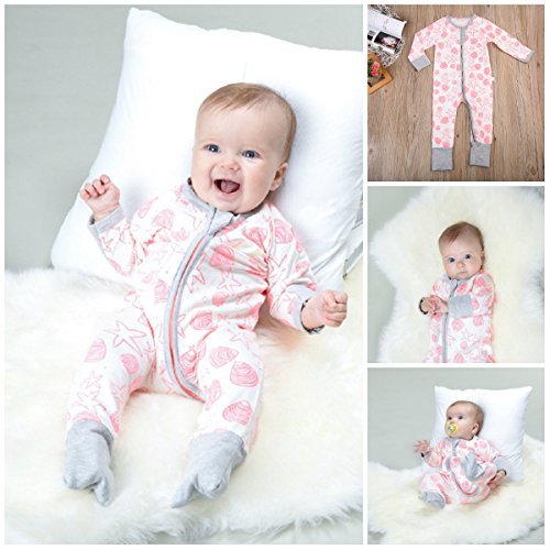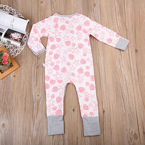 女の子 ベビー服 ロングスリーブ カバーオール 前開き ジッパー 綿100% スターパターン ロンパース 子供服 ピンク (70, ピンク)