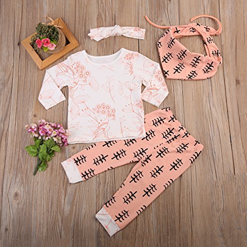 ベビー フラワー+ シャツ+ ロングパンツ+ ヘッドバンド+ 涎掛け 上下四点 秋冬服 ピンクセット (100, ピンク)