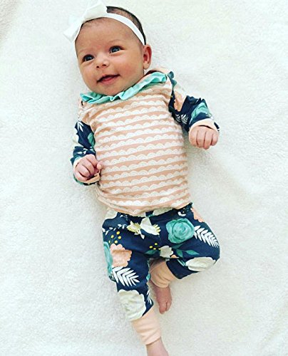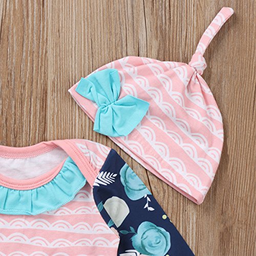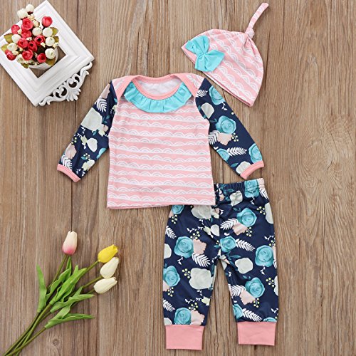 0-2歳設定 女の子 ベビー秋冬 スーツ 波の縞ロングシャツ ローズパンツ ピンク帽子 上下三点セット  (80, ピンク)