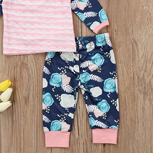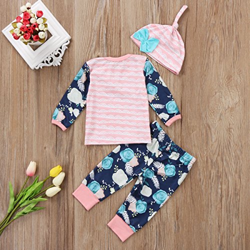 0-2歳設定 女の子 ベビー秋冬 スーツ 波の縞ロングシャツ ローズパンツ ピンク帽子 上下三点セット  (70, ピンク)