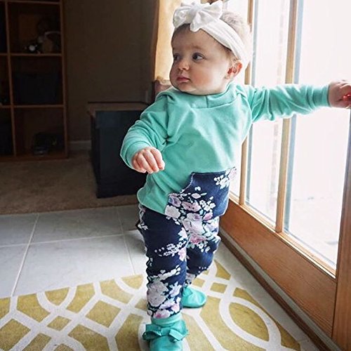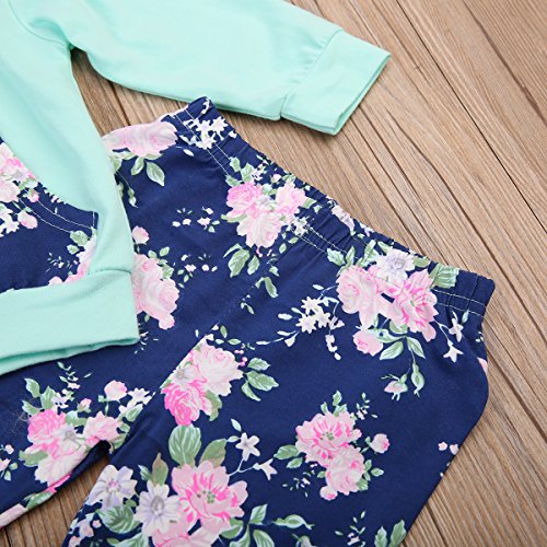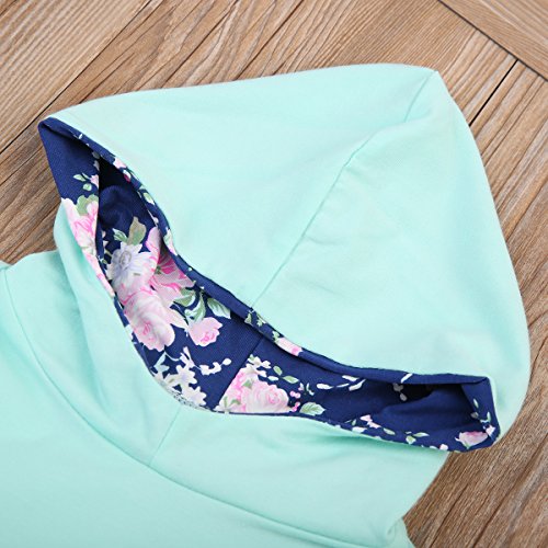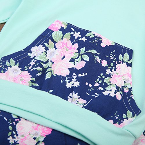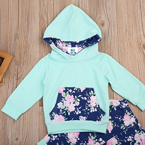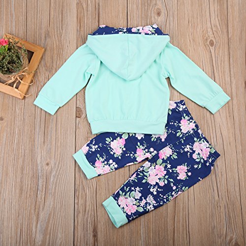 新生児 幼児 長袖パーカー&長ズボン 上下セット フラワー ピンク グリーン ベビー女の子 秋服 スポーティー カジュアル (80, グリーン)