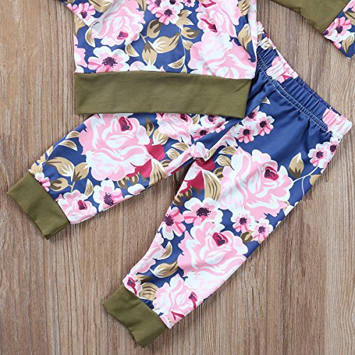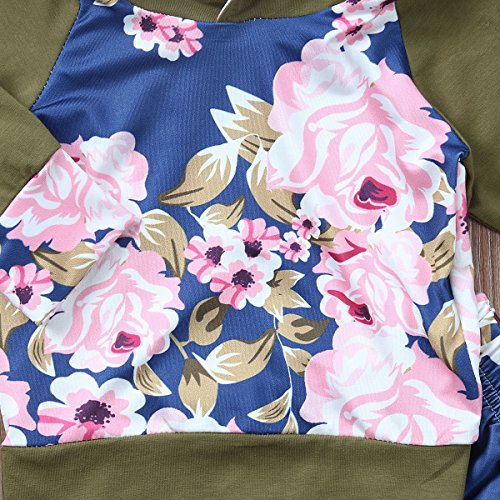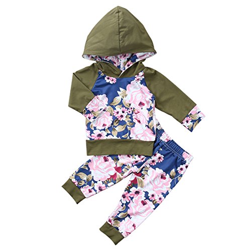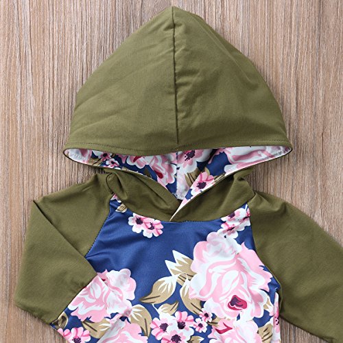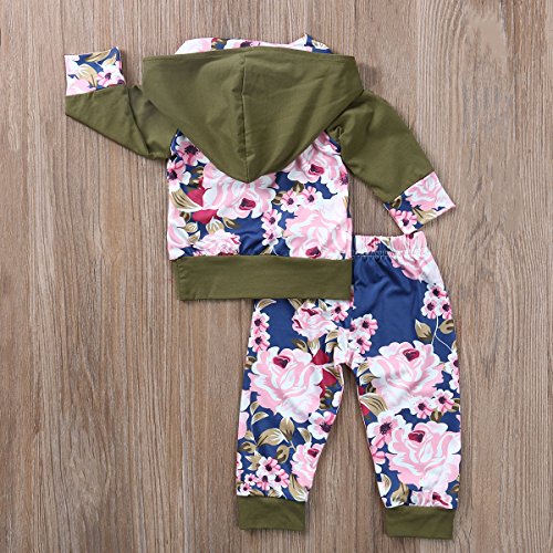 子供服 女の子 幼児 フラワー パーカー ロングパンツ 上下二点セット カジュアル アーミーグリーン (80, アーミーグリーン)