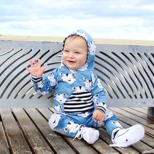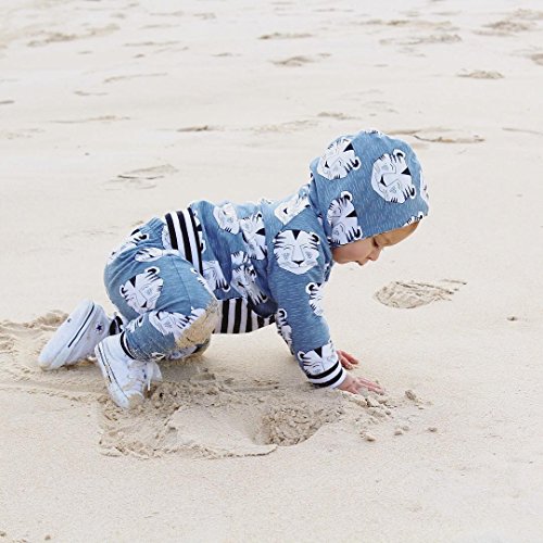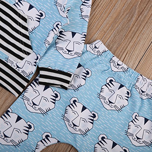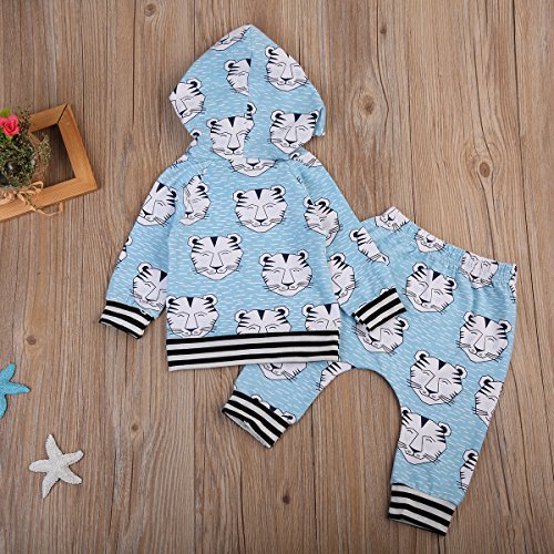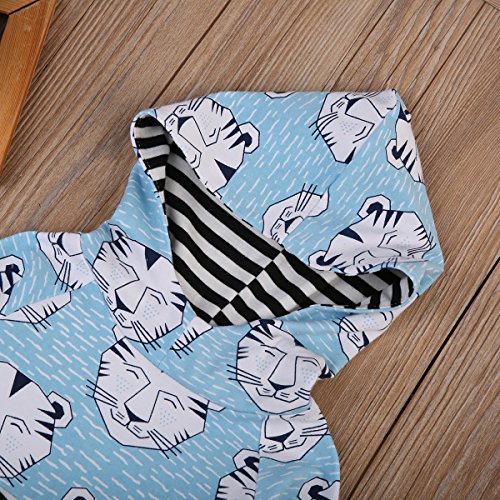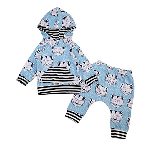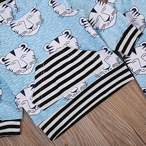 新生児 幼児 女の子 男の子 上下二点セット カジュアル 虎柄 パーカーポケットつき+ ストライプ ロングパンツ 水色 0-24月設定 (100, ブルー)