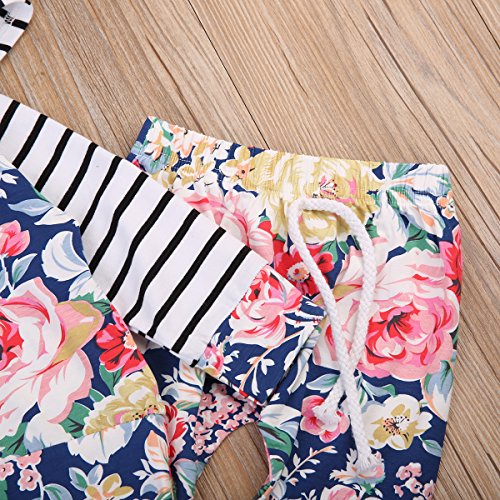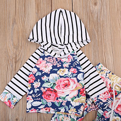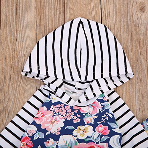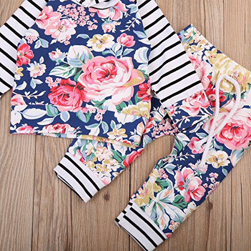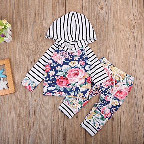かわいいベビー秋服 女の子 綿100% 花柄 ストライプ 長袖パーカー ゴムロングパンツ 上下二点セット 0-24月設定 (100, 花柄)