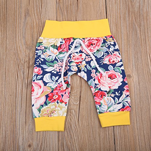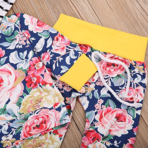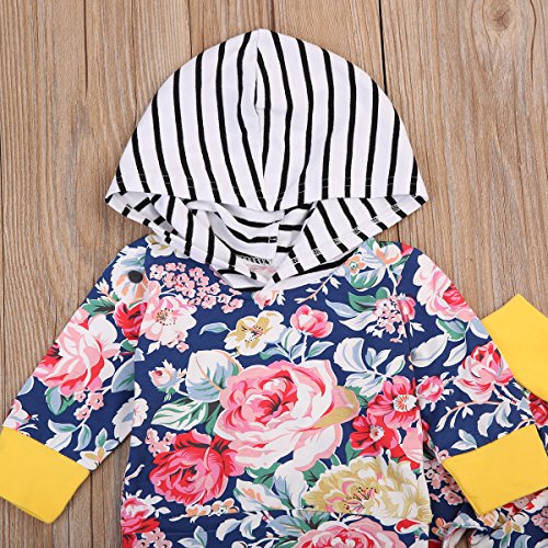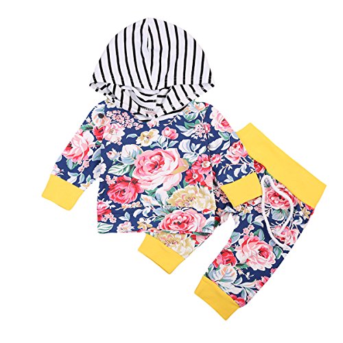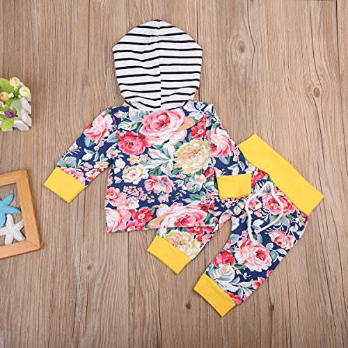 かわいいベビー秋服 女の子 綿100% 花柄 ストライプ 長袖パーカー ゴムロングパンツ 上下二点セット 0-24月設定 (90, イエロー)