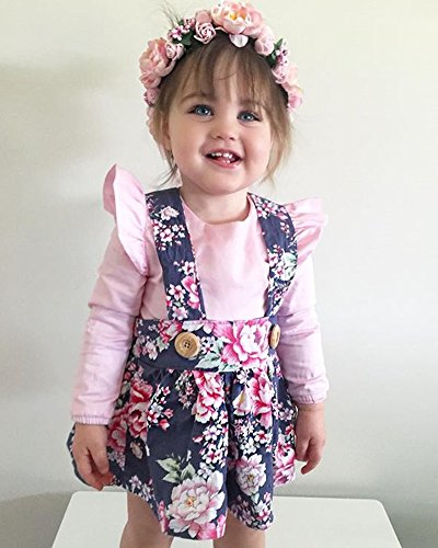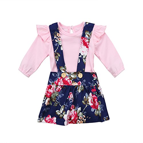 ベビー 女の子 秋冬服 ピンク ロンパース+フラワーサロペットスカート 二点セット カジュアル 0-24月設定 (100, ピンク)
