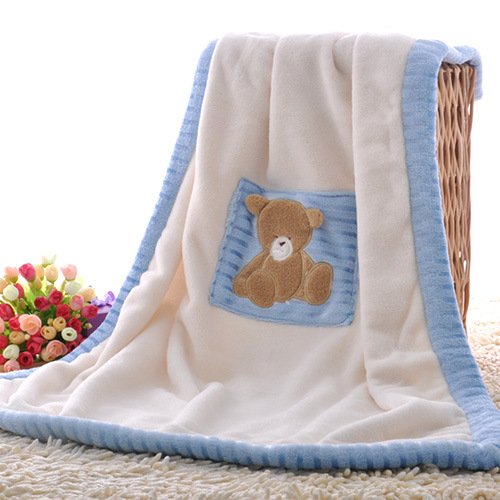 Lemonda 超柔らかいサンゴのベルベット製 ブランケット ベビーブランケット 出産祝い ひざ掛け ベビー ひざかけ 100 x 75cm (ブルー)