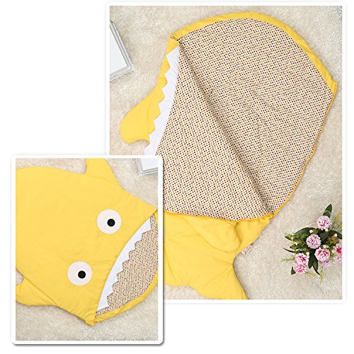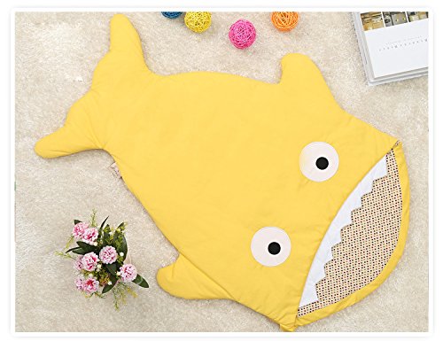 子供用 寝袋 シュラフ ブランケット お昼寝布団 ベビー/赤ちゃん対応 やさしい肌触り サメの形 暖かい キッズシェラフ 毛布 かわいい 出産祝い (イエロー)