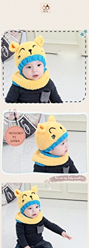 Lemonda ニット帽 マフラー セット ベビー キッズ 子供 赤ちゃん 秋冬用 防寒 かわいい ニット 帽子 クリスマスプレゼント 誕生日 出産祝い (イェロー)
