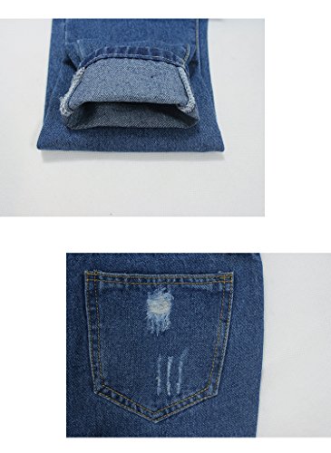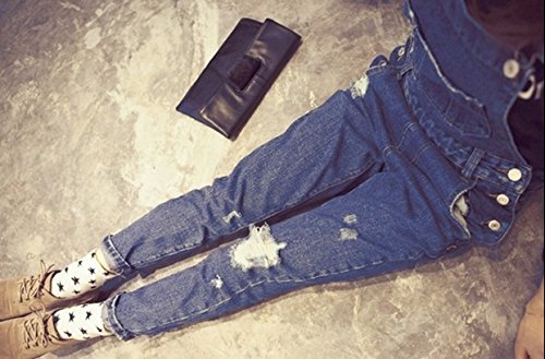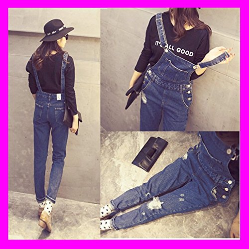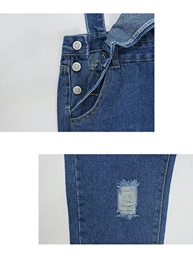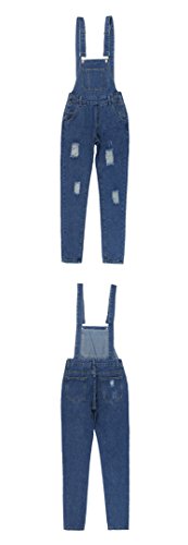Leorionna デニム サロペット オーバーオール レディース ダメージ オールインワン スキニー ジーンズ マタニティ おしゃれ 古着 かわいい(ブルー XL)