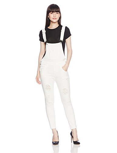 Leorionna デニム サロペット オーバーオール レディース ダメージ オールインワン スキニー ジーンズ マタニティ おしゃれ 古着 かわいい (白 XL)