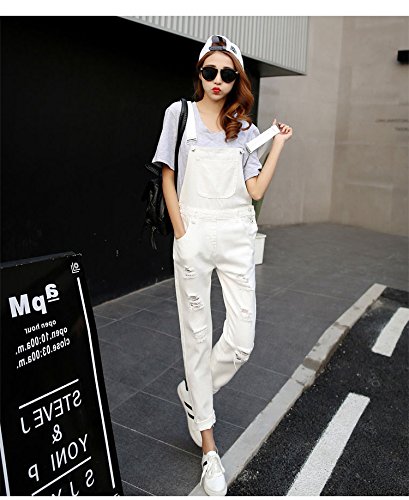 Leorionna デニム サロペット オーバーオール レディース ダメージ オールインワン スキニー ジーンズ マタニティ おしゃれ 古着 かわいい(白 M)