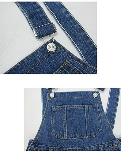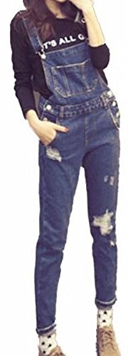 Leorionna デニム サロペット オーバーオール レディース ダメージ オールインワン スキニー お洒落 きれいめ S M XL (ブルー Lサイズ)