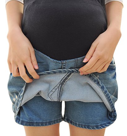 - マタニティ用のスカート風ショートデニムキュロットパンツ。