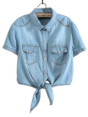 Les Hiboux(レ・イブー) シャツ ショート丈 デニム 半袖 ブラウス レディース ライトブルー M