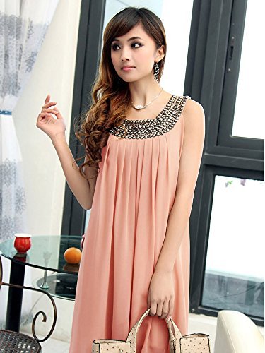 レ・イブー チュニックワンピース ふわさら ノースリーブ シフォン ドレス レディース ピンク Mサイズ