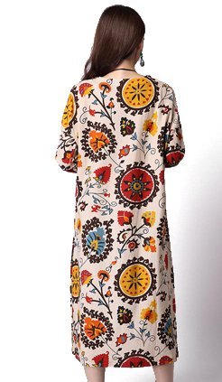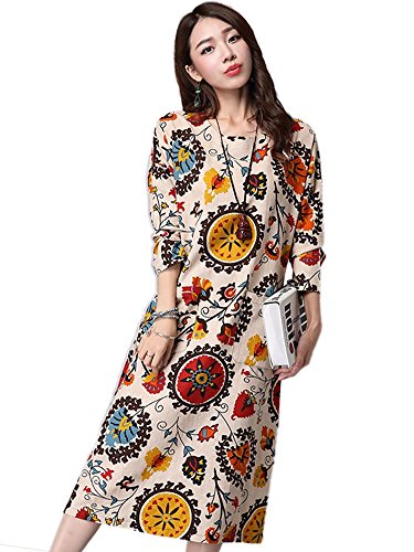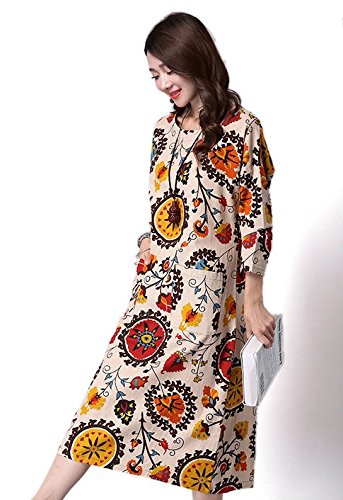 - 仕様 : ボタニカル柄長袖ミモレ丈ワンピース、左右ポケット付き