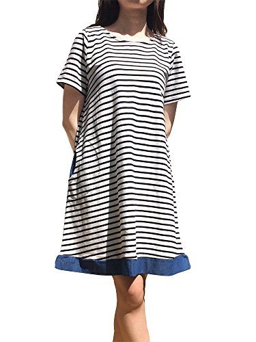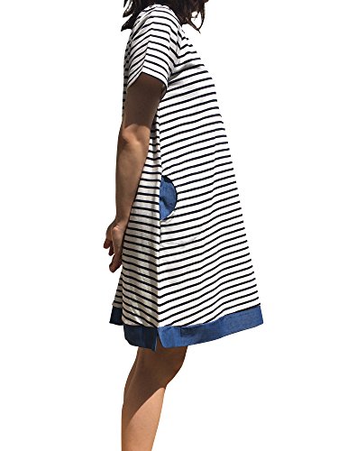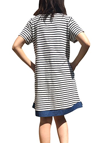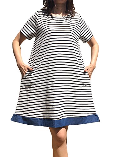 (Les Hiboux) 快適 マタニティ ボーダー ワンピース チュニック