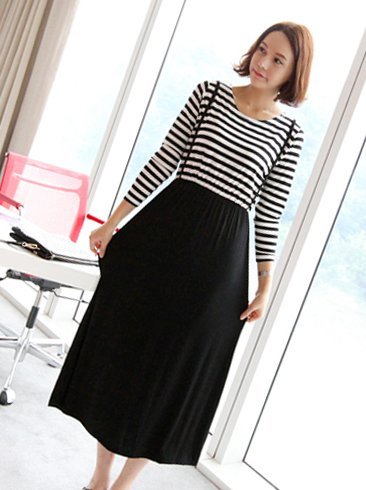 [Les Hiboux(レ・イブー)] ワンピース マタニティ 長袖 ボーダー ロング 授乳服 レディース M