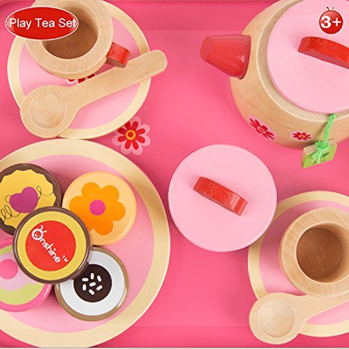 ※ バラ色の色や魅力的な装飾品、この 18 ピース木製ティー-パーティーを再生します。Bignosedeer 紅茶セットの耐久性、食品安全木製コンポーネントは、おやつの時間にも使用可能!