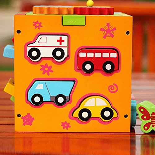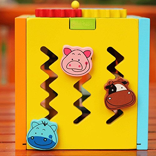 - 3種類のゲーム「型はめパズル」、「迷路」、「木の歯車」とそれぞれ違う遊びのつまった、飽きのこない楽しい木製の知育玩具です。