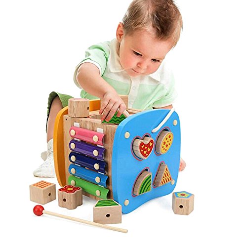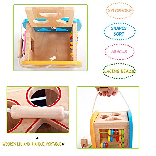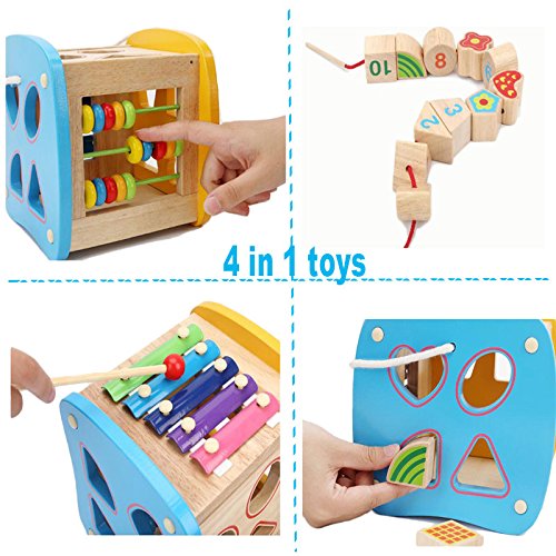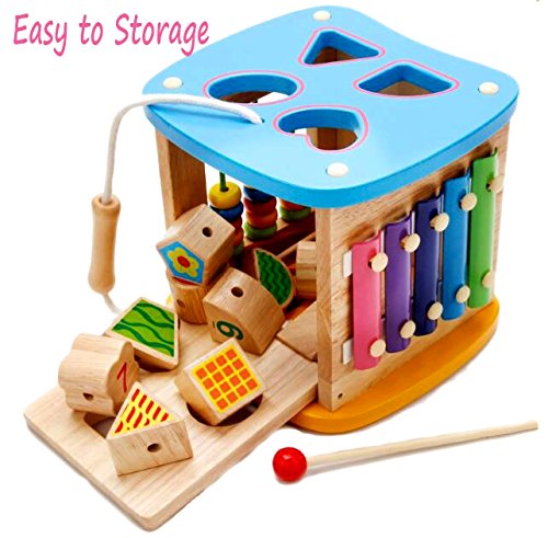 木のおもちゃ 遊び箱 型はめパズル 木琴 紐通し ビーズ 珠算 そろばん 形合わせ早期開発 知育玩具 男の子 女の子 赤ちゃん ベビー 出産祝い