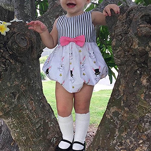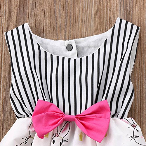ベビー服 カバーオール キッズ服 ドレス 女の子 ウサギ 黒白の縞 蝶結び付き ロンパース オールインワン カバーオール 無袖 可愛い 春 夏 (70/0-8ヶ月)