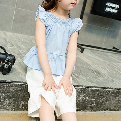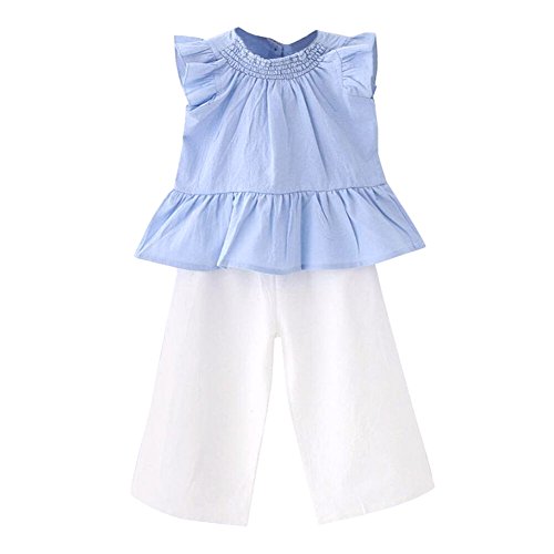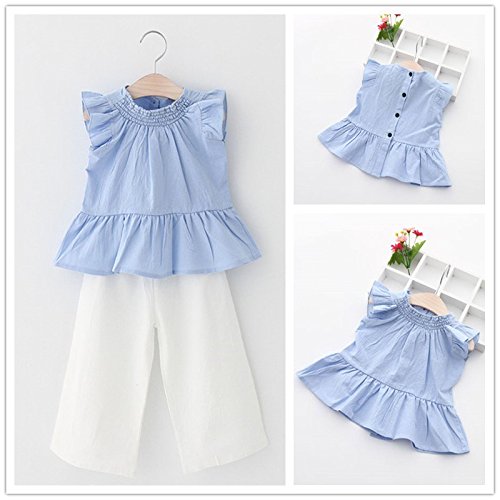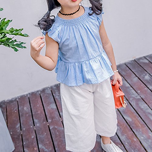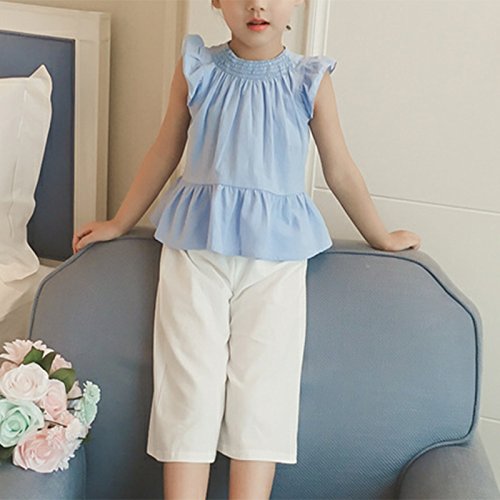 ガールズ上下セット服 子供上下セット服 女の子用服 夏 無地 シンプルシャツ 九分丈パンツ 女の甘い袖無し 丸襟 Tシャツ上着+長パンツ(九分丈)セット服 二点セット 春夏 可愛い ベビ用服 柔らかい おしゃれ ノースリーブ ベビ用服