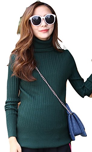 (リアンジュ・アイ)Liange・ai マタニティ ハイネック ニット 秋冬 オリジナルポーチ付き (グリーン)