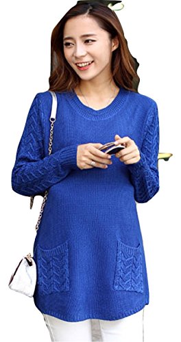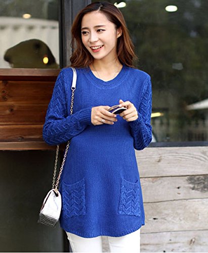 (リアンジュ・アイ)Liange・ai マタニティ ニットトップス チュニック丈 秋冬 オリジナルポーチ付き (ブルー)