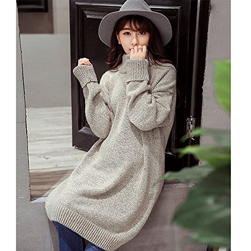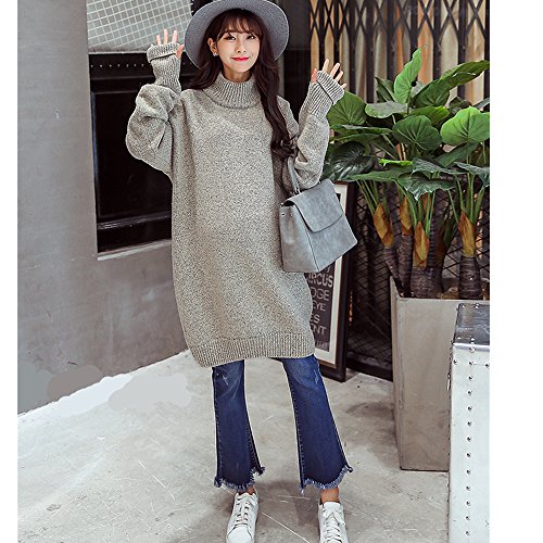 (リアンジュ・アイ)Liange・ai レディース マタニティ セーター ワンピース ニット タートルネック あったか ファッション おしゃれ 保温 冬 4色 フリーサイズ オリジナルミニポーチ付き (グレー)