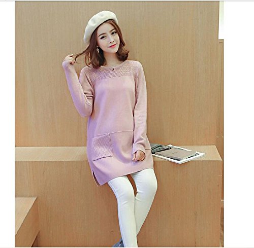 (リアンジュ・アイ)Liange・ai レディース マタニティ ウェア トップス ニット 産前 産後 長袖 あったか 保温 秋 冬 3色 ピンク フリーサイズ オリジナルミニポーチ付き (ピンク)