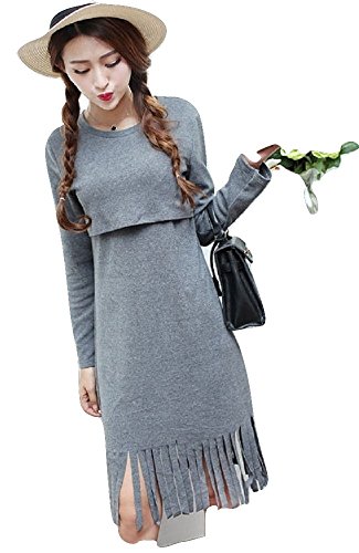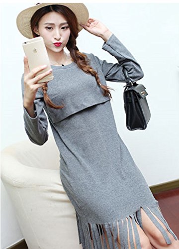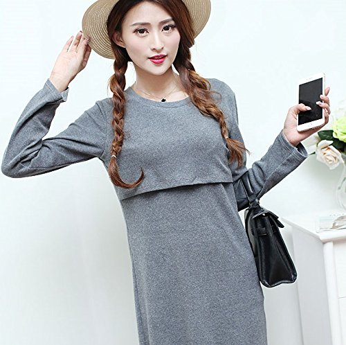 (リアンジュ・アイ)Liange・ai マタニティ カットワンピース 授乳口 付き 秋冬 オリジナルポーチ付き (M, グレー)