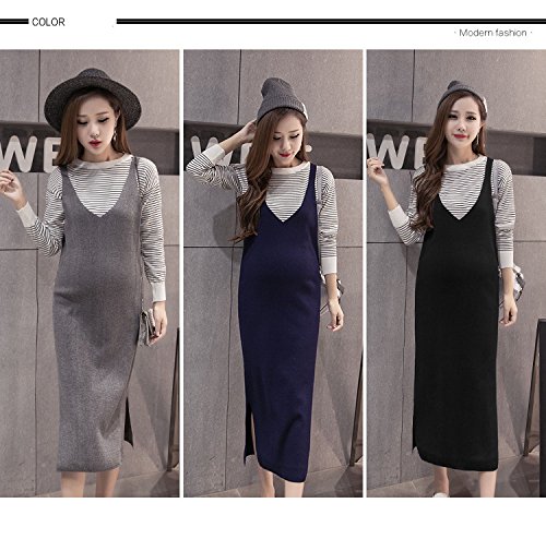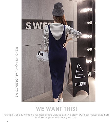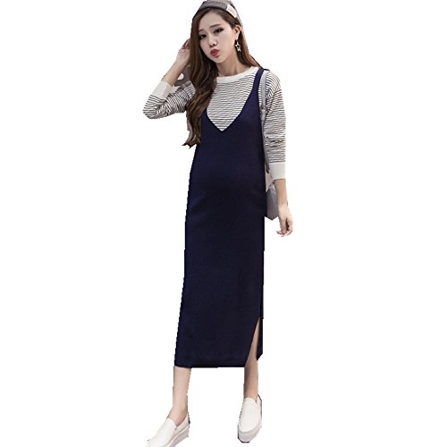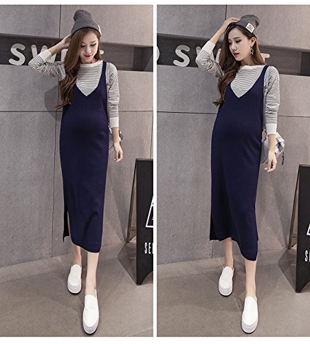 (リアンジュ・アイ)Liange・ai レディース マタニティ 女性 ニットワンピース 産前 産後 秋 冬 3色 フリーサイズ ブルー オリジナルミニポーチ付き (ブルー)