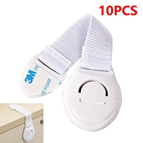 Librao ベビーガード ストッパー 10個入り キャビネットロック ホワイト 粘着タイプ ロング セーフティグッズ 安 全ロック