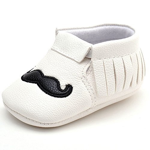 - Lidiano Infant Baby Toddler PU Leather Moustache Print Soft Sole Tassels Moccasins Crib Shoe (6-12 Months, White)