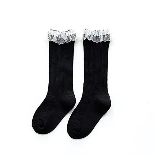 冬セール 赤ちゃん ベビー 子供 綿 レース ダンス チューブソックス 黒 4-6 歳
