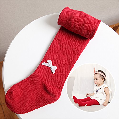 赤ちゃんの幼児の女の子かわいいちょう結び暖かい赤いタイツのレギンスパンティーストッキング1-2歳