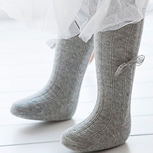 子供の赤ちゃんのかわいいレースのボウのタイツストッキング暖かいレギンスのパンティストッキンググレー2-4Y
